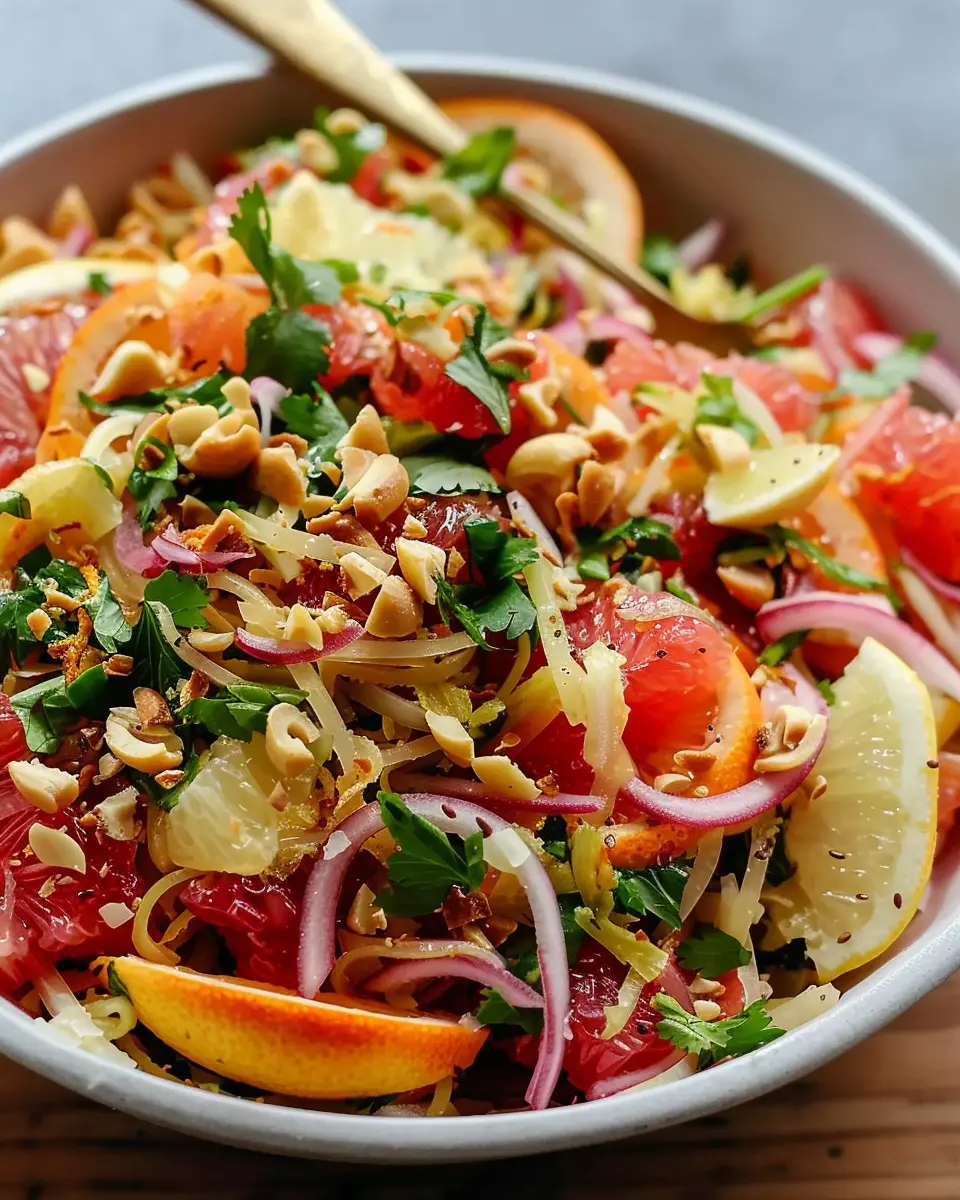 Wrapping up, Anna Jones’ Raw Thai Citrus Crunch Salad is more than just a vibrant dish; it’s a celebration of flavors and textures. This refreshing salad combines zesty citrus, crunchy vegetables, and a delightful crunch from nuts and seeds, making it perfect for a quick lunch or a side dish at your next gathering.