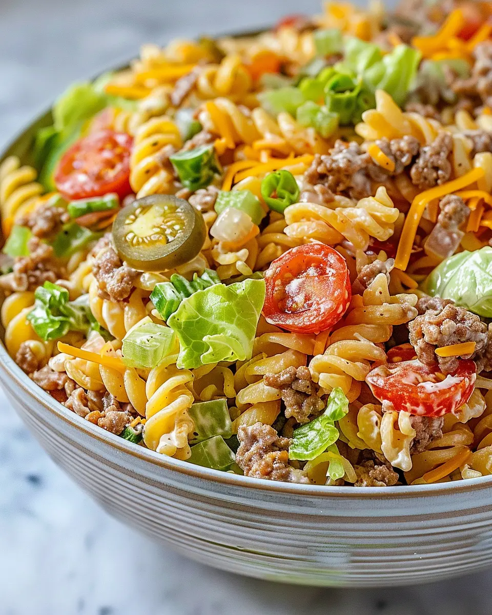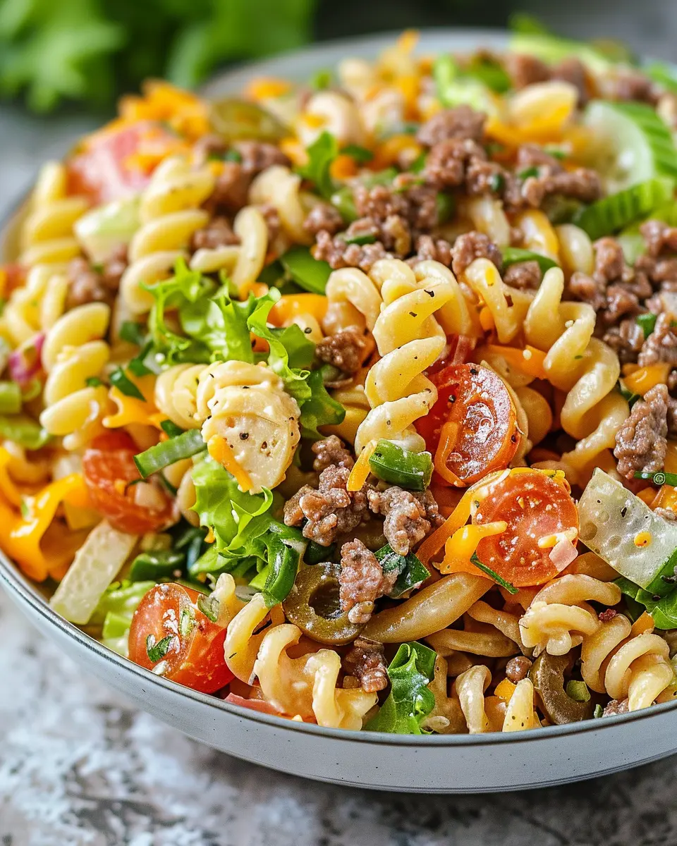 This Big Mac Pasta Salad is a delightful twist on a classic that is not only easy to make but also serves as a crowd-pleaser. Enjoy your meal and the compliments that will surely follow!