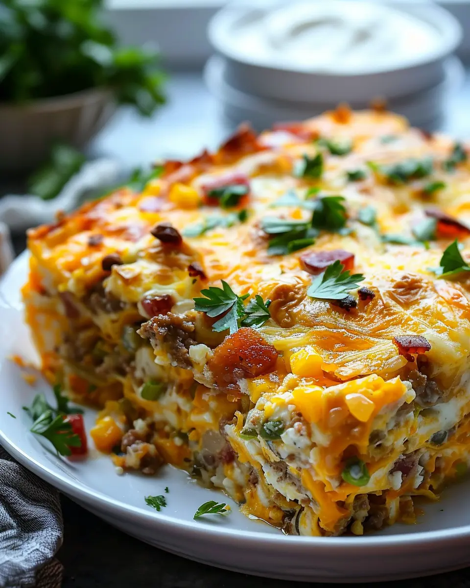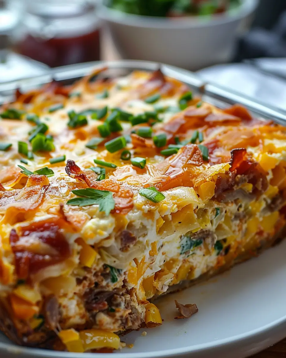 Finally, bake your casserole in the preheated oven for about 45-55 minutes or until it’s golden brown and cooked through. As it bakes, your home will fill with the warm, inviting aroma of a cozy breakfast, making everyone’s mouths water. Once it’s done, let it cool for a few minutes before slicing and serving. Trust me, the first bite is pure bliss, and you’ll be the star of the brunch table.