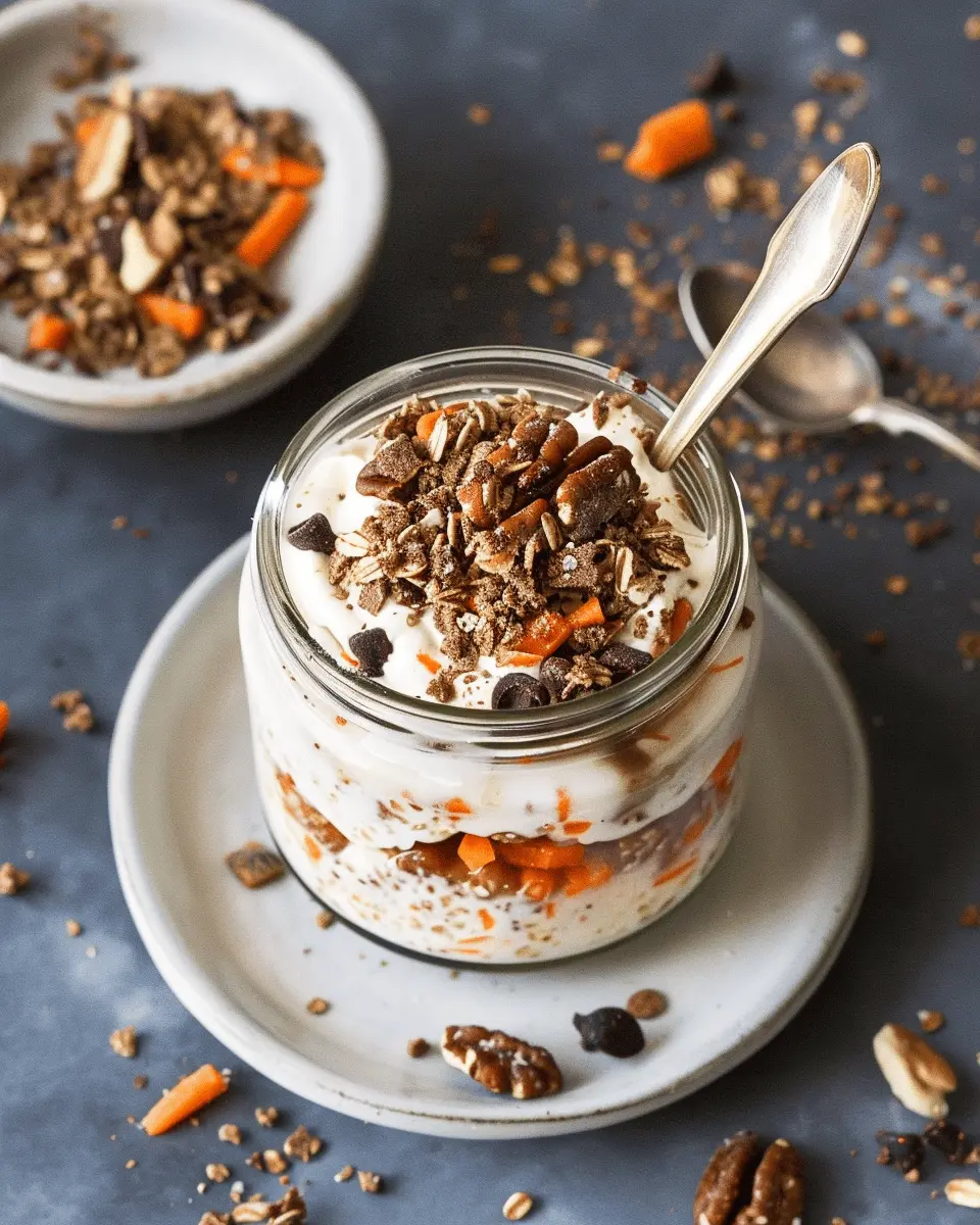 Pop the lid on and refrigerate overnight. The next morning, you’ll wake up to the delightful scent of carrot cake wafting through your kitchen. Just give it a quick stir, maybe top with a few extra nuts or a drizzle of the ganache, and enjoy your scrumptious breakfast!