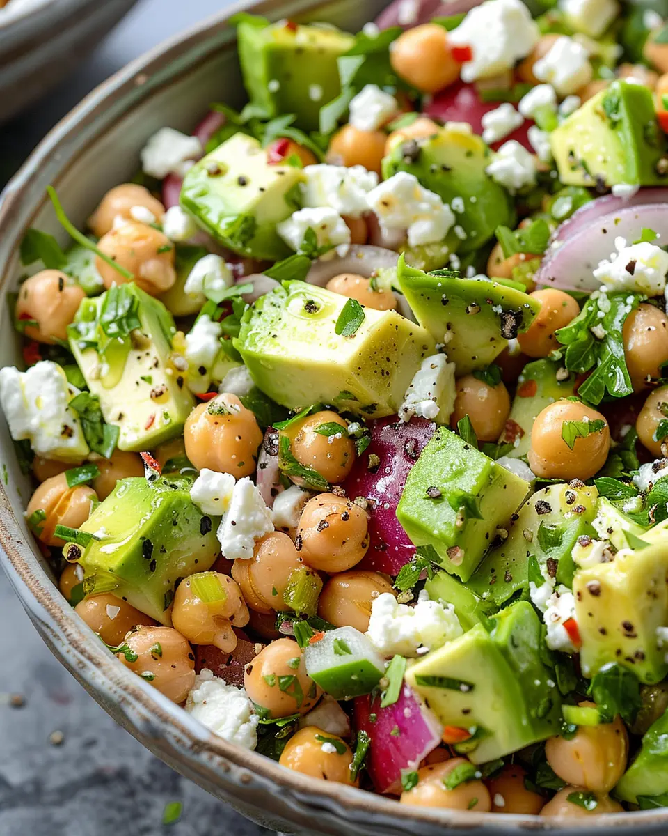Absolutely! The chickpea feta avocado salad is perfect for meal prep. Just be mindful that the avocado can brown over time. Here’s a quick tip: prepare the salad base—chickpeas, feta, and veggies—ahead of time and store it in an airtight container. When you’re ready to eat, just add freshly diced avocado. You can even squeeze some lemon juice on the avocado to help preserve its vibrant color. This way, you can enjoy a fresh and tasty salad all week long!