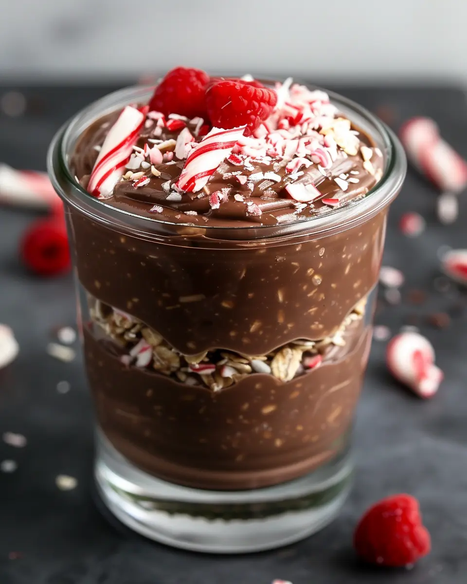 Once everything is combined, let your delicious creation chill in the fridge for at least 4 hours. Overnight is best—this allows the oats to absorb all that wonderful chocolate and peppermint flavor.