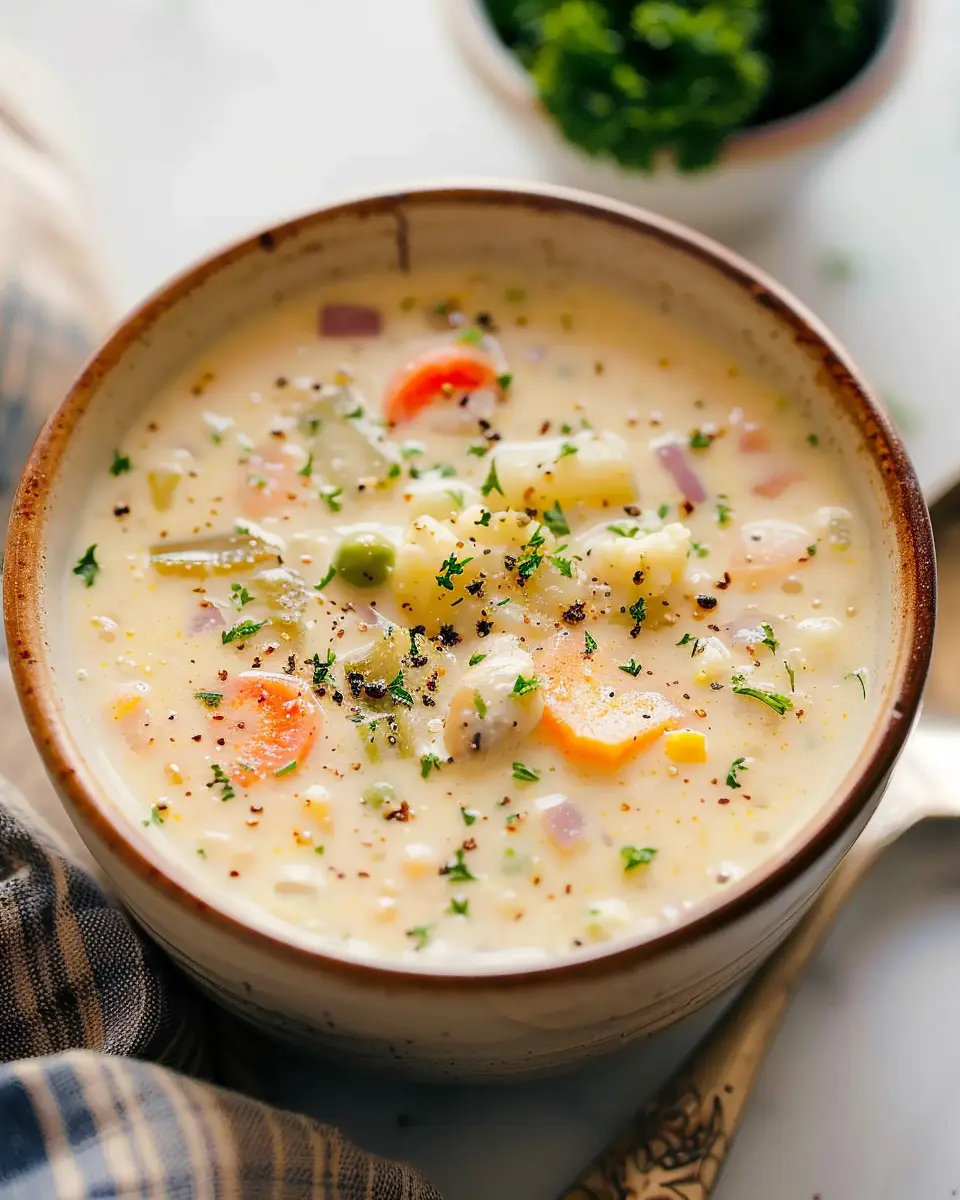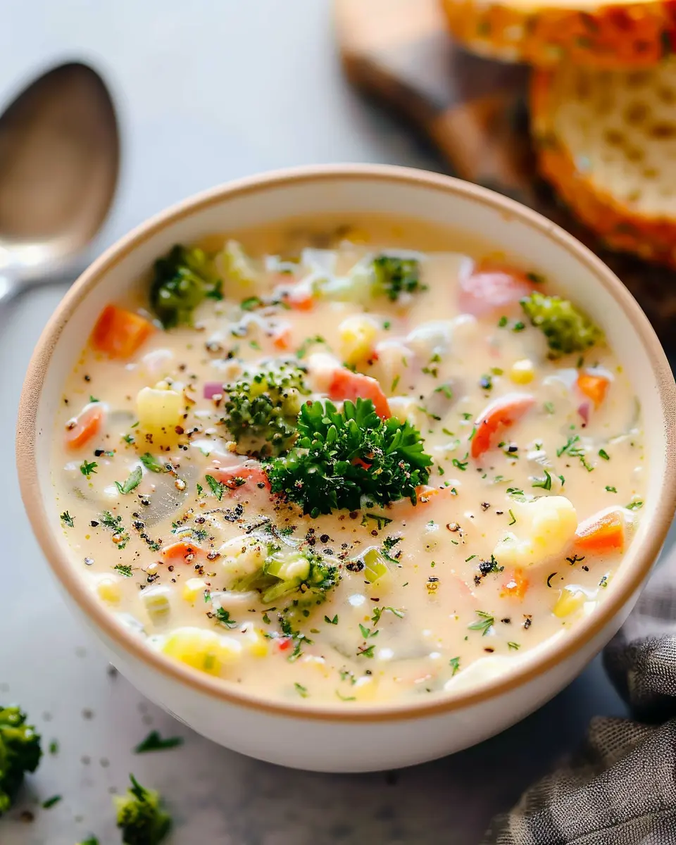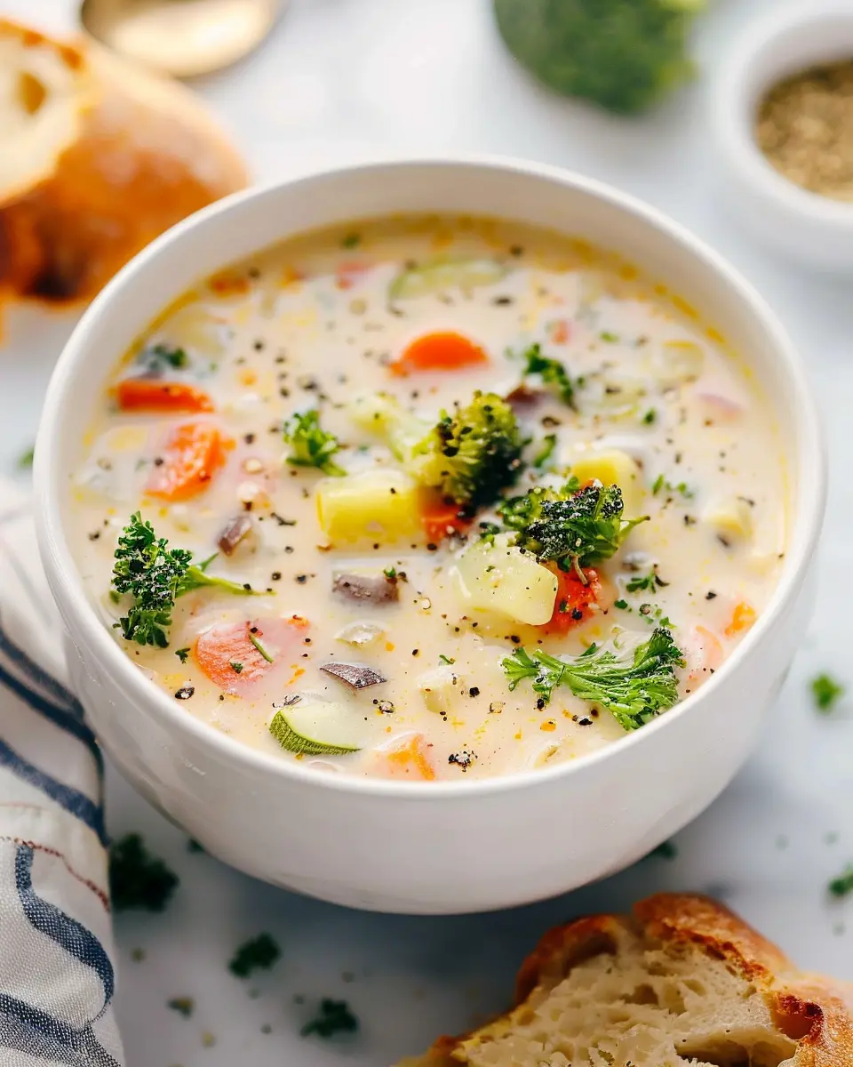 Making the creamy vegetable soup vegetarian-friendly is easy! Simply swap out any meat ingredients like turkey bacon or chicken ham with your favorite plant-based proteins, like chickpeas or lentils. Using vegetable broth instead of chicken broth and selecting a cream alternative, such as coconut milk or cashew cream, will keep it rich and satisfying without any animal products. For more tips on vegetarian cooking, check out resources from the Vegetarian Society.