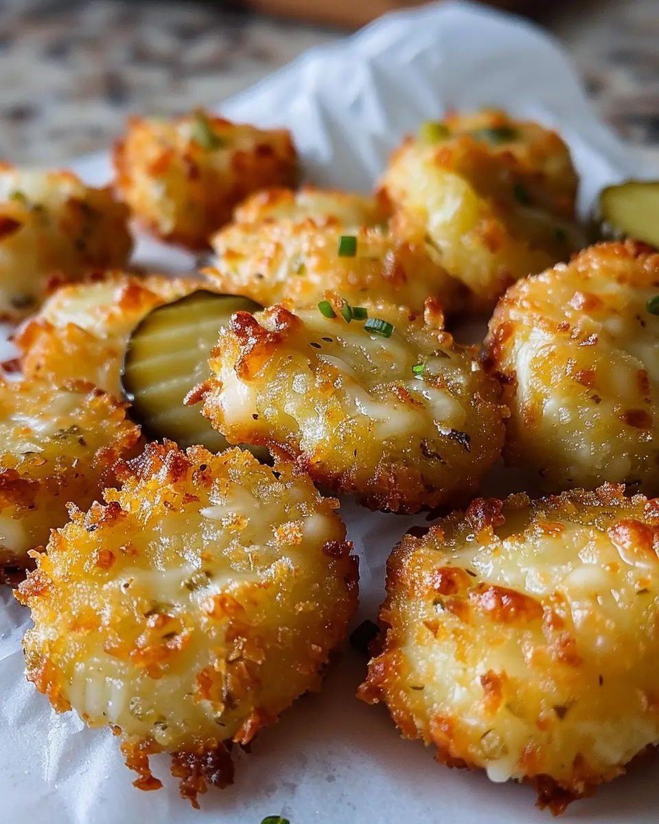 These crispy pickle cheese bites are the perfect combination of flavors, making them a must-try appetizer for any gathering.