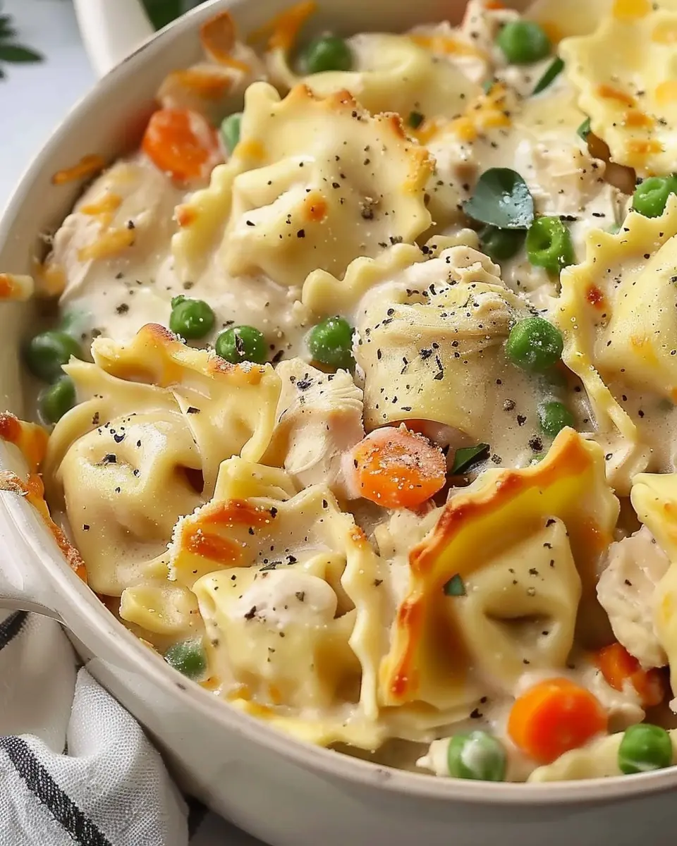 PrintCrockpot Cheddar Chicken Pot Pie Tortellini: Easy Comfort Food Delight