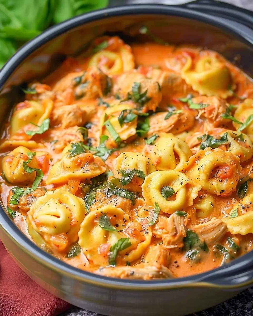 A comforting and easy-to-make meal perfect for weeknight dinners, combining tender chicken and delicious tortellini, all cooked in the slow cooker.