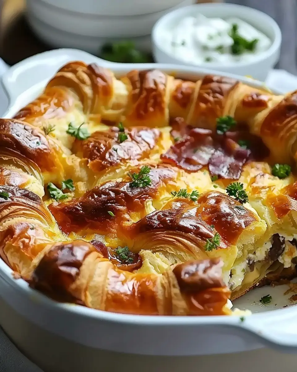 A croissant breakfast casserole can surely transform your breakfast routine into something truly special. This delightful dish marries the flaky texture of croissants with the savory goodness of Turkey Bacon and Chicken Ham, creating a unique experience that sets the tone for your day.