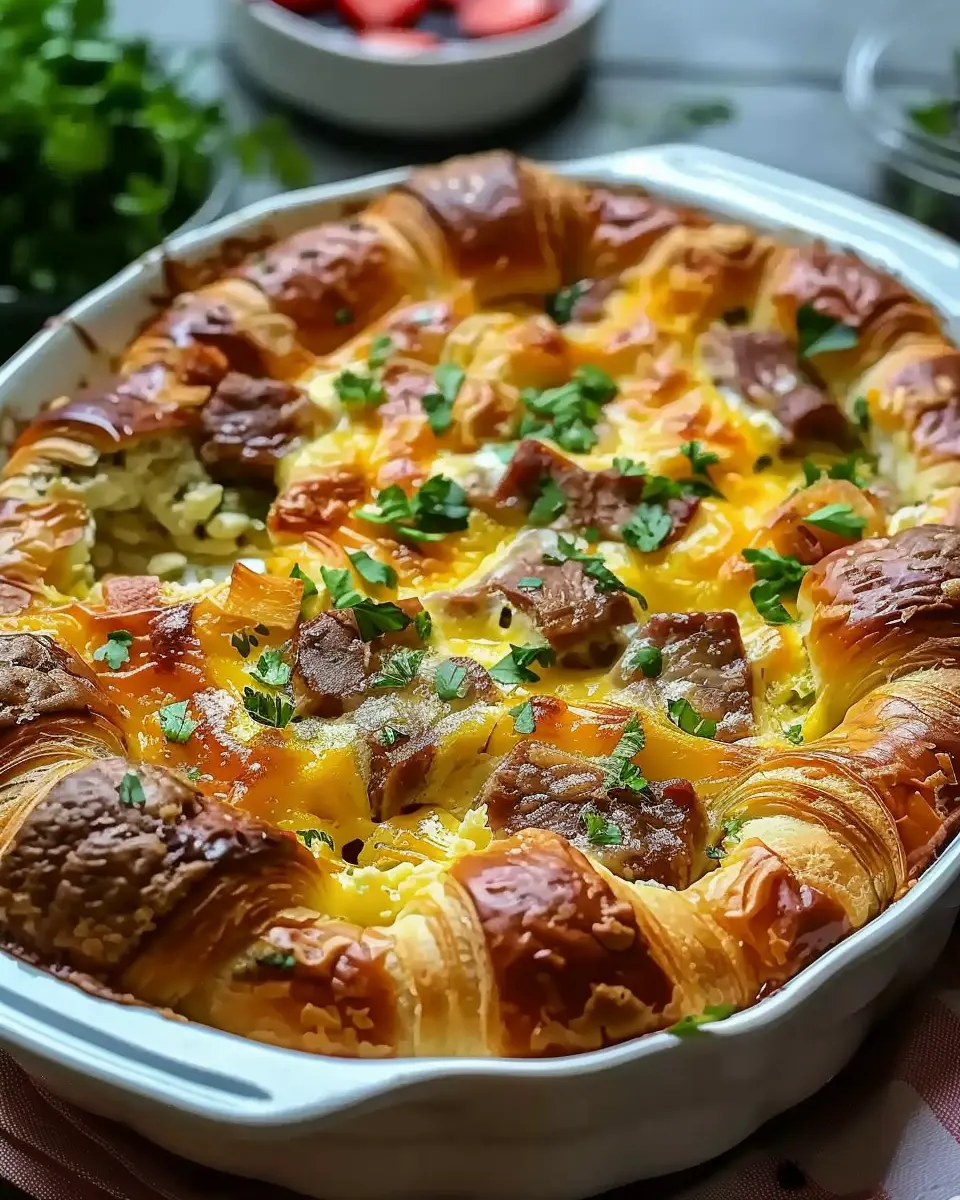 In summary, the Croissant Breakfast Casserole is not just a recipe; it’s a delightful way to elevate your breakfast game. With its flaky croissants, savory fillings like turkey bacon and chicken ham, and the creamy egg mixture, this dish is sure to impress both your family and friends.