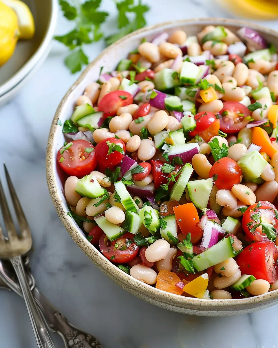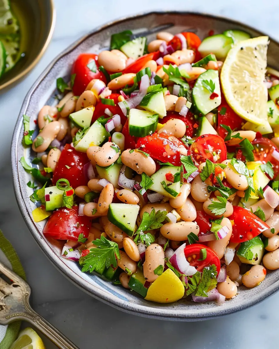 In summary, this easy lemon-marinated bean and vegetable salad is a vibrant addition to any meal, combining nutrition and flavor in a way that’s both satisfying and refreshing. Whether you’re prepping for a picnic or simply looking to elevate your weeknight dinner, this salad offers a simple way to achieve your health goals.