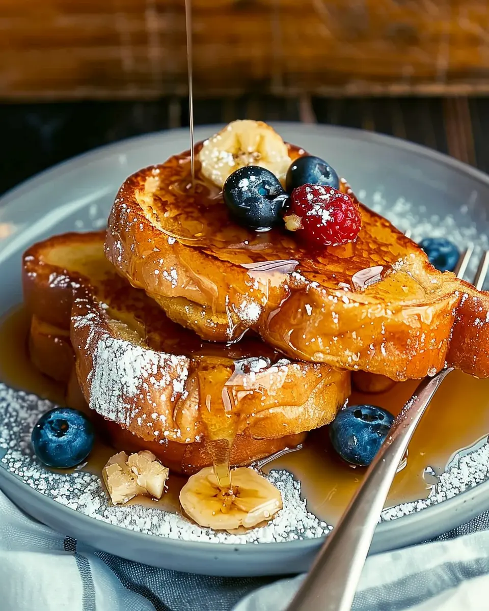 When it comes to presenting your French Toast Recipe, creativity is key. Start with a simple stack of golden-brown slices, then add a dollop of whipped cream or a sprinkle of powdered sugar for that brunch-time flair. Fresh berries, like strawberries, blueberries, or raspberries, not only add a pop of color but also offer a refreshing contrast to the rich toast. Drizzle with maple syrup or a flavored syrup like vanilla or caramel for an extra touch of indulgence.