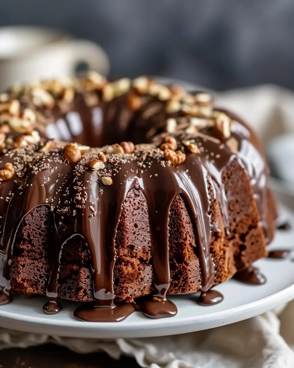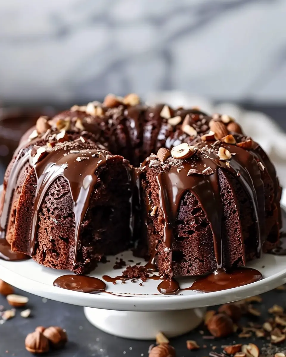 PrintHazelnut Bundt Cake with Espresso & Chocolate Glaze: Your Best Indulgence