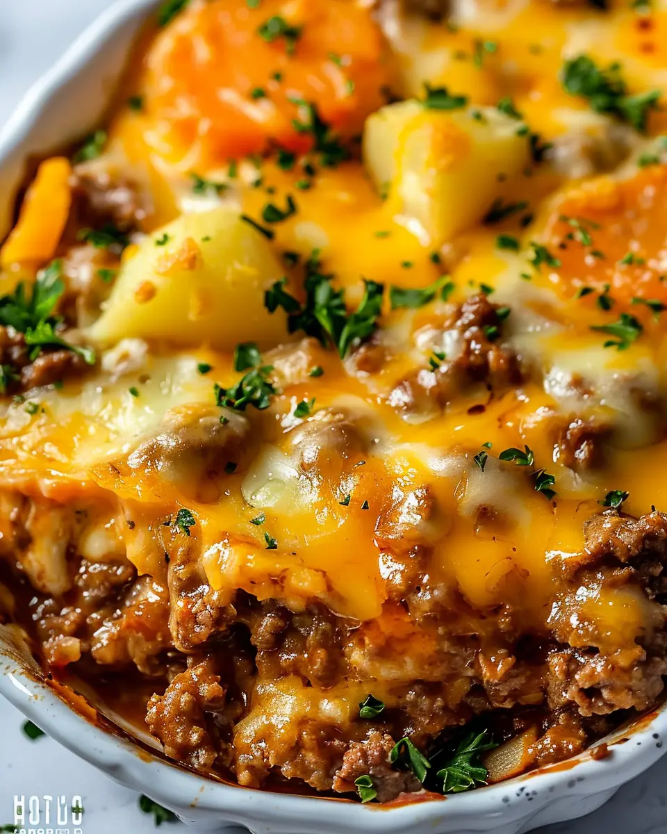 A comforting and delicious hobo casserole made with ground beef, perfect for family dinners.