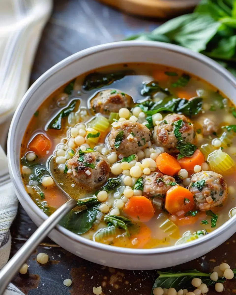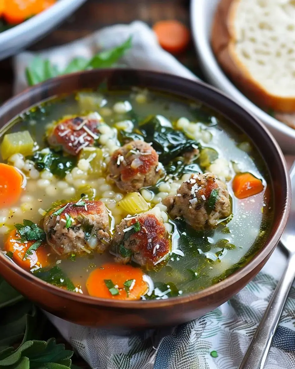 Absolutely! One of the great things about Italian Wedding Soup is that it tastes even better the next day. You can prepare the meatballs and broth ahead of time, then combine them just before serving. When making it in advance, store the soup and meatballs separately to avoid the pasta from getting too soggy. Just reheat before serving and enjoy a quick, comforting meal, even during a busy weeknight.