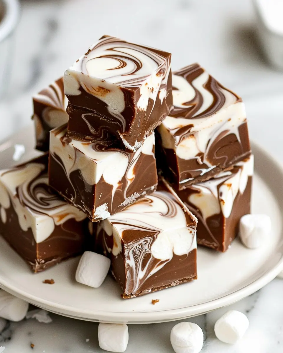 Indulge in the rich and creamy flavors of Marshmallow Swirl Fudge, the perfect treat to satisfy your sweet cravings at home.