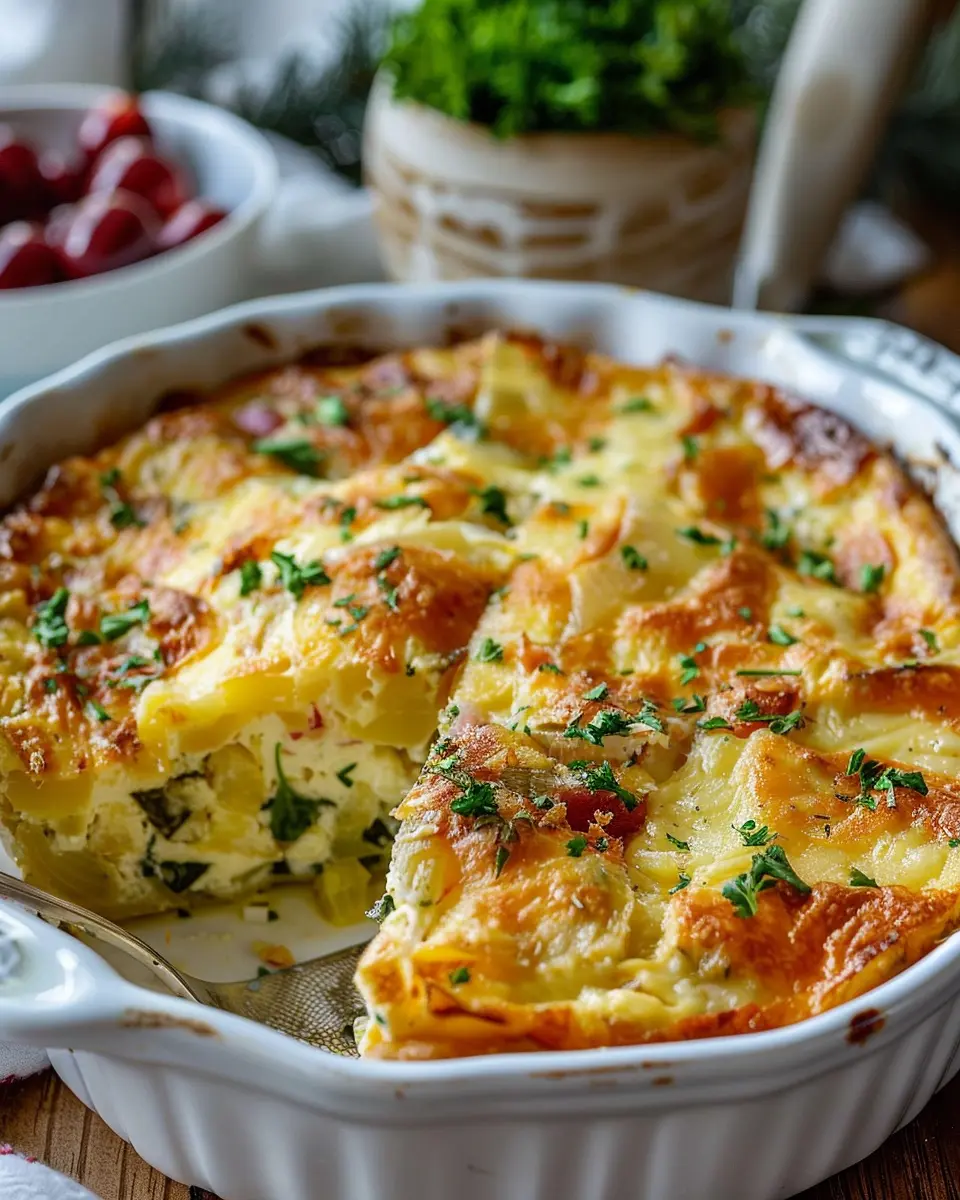 A delightful Christmas breakfast casserole featuring turkey bacon that is easy to prepare and perfect for holiday celebrations.