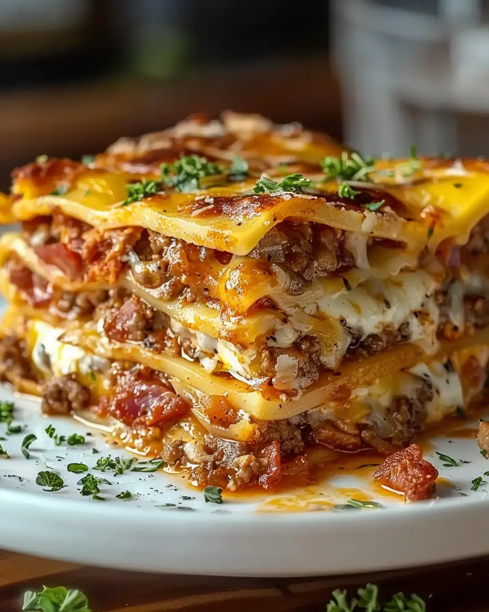 Parmesan Garlic Turkey Bacon Cheeseburger Lasagna Recipe: A Cheesy Indulgence
