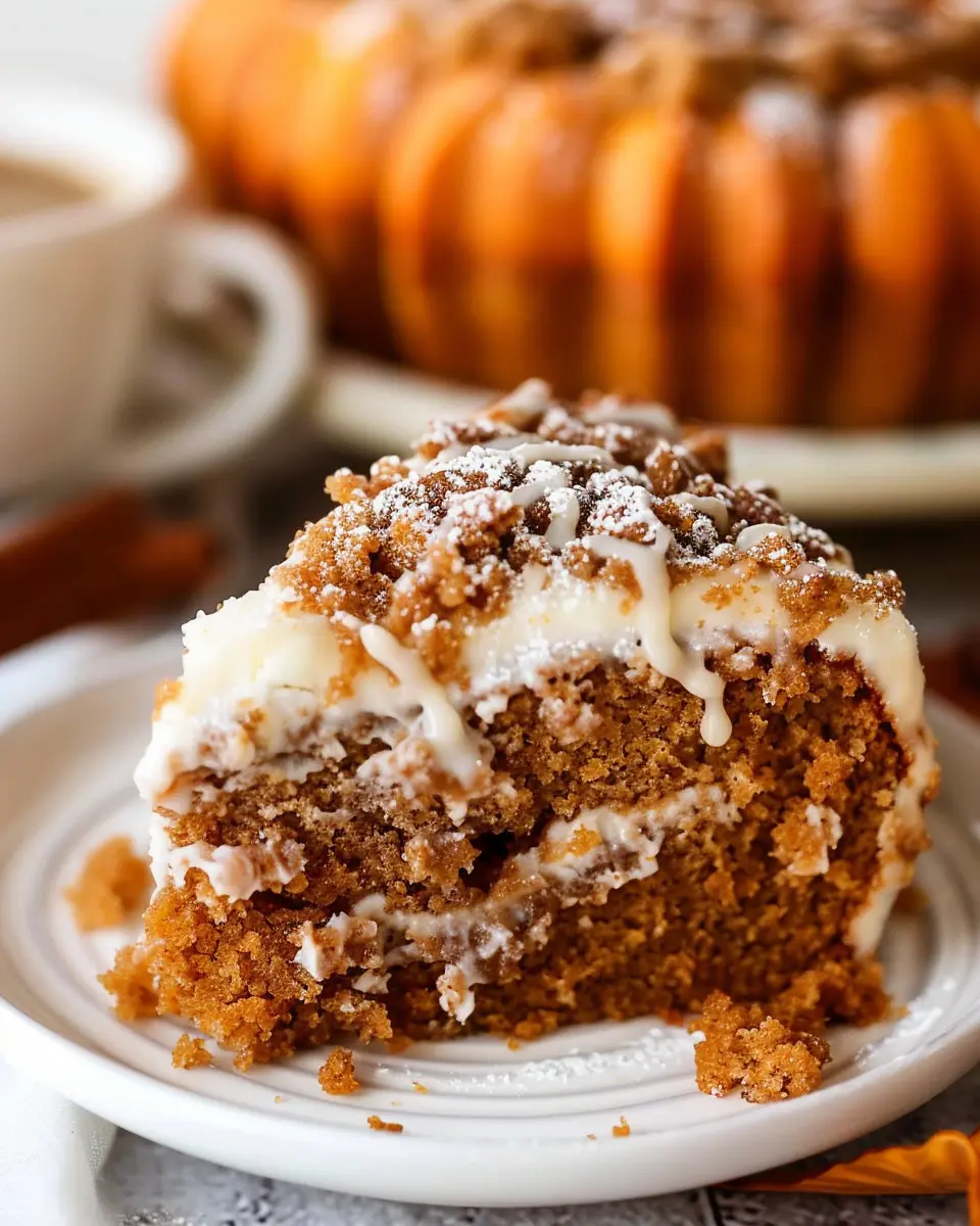 This pumpkin coffee cake is the perfect fall treat, blending rich pumpkin flavors with a delightful crumb texture.
