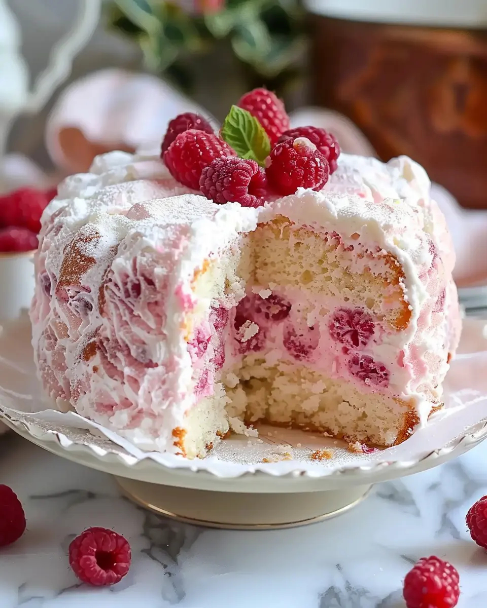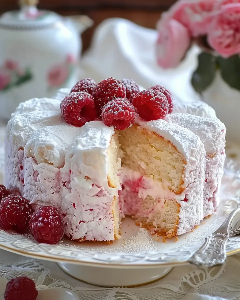 PrintRaspberry Angel Food Cake: Easy Recipe for a Light Delight