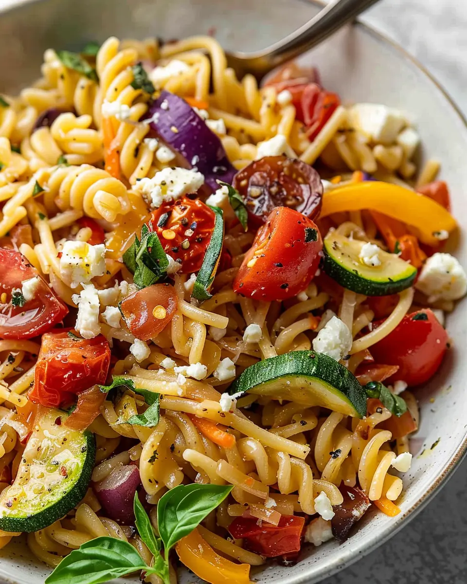 PrintRoasted Veggie Pasta with Feta: Easy Comfort Food Bliss