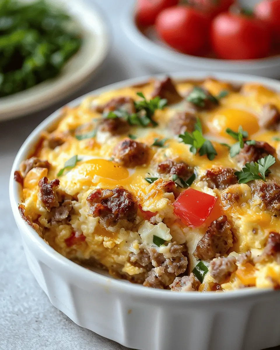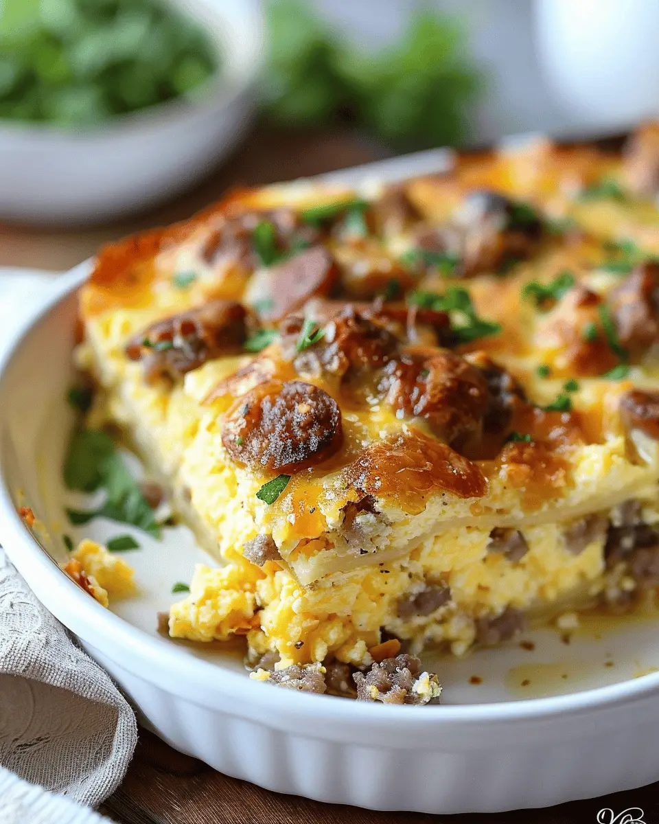 Once it’s out of the oven, let it cool for a few minutes before serving. This casserole pairs perfectly with fresh fruit or even a light salad on the side. Now, take a moment to admire your creation before digging in—after all, cooking is just as much about enjoying the process as it is about the end result!