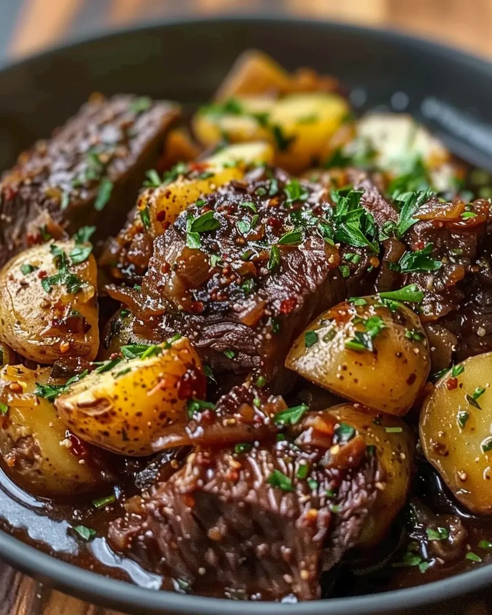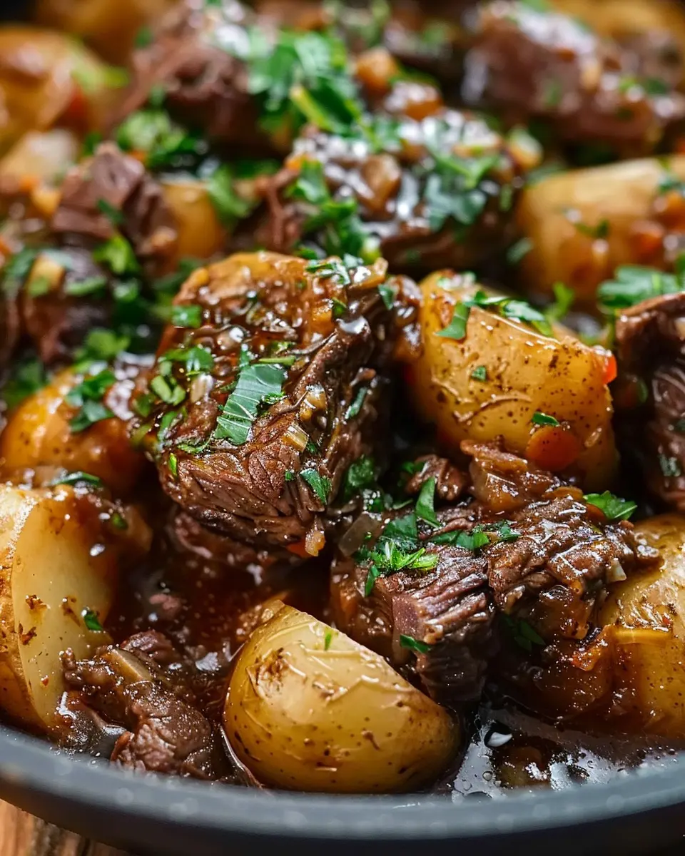 A comforting dish featuring tender beef and flavorful potatoes, perfect for cozy nights.