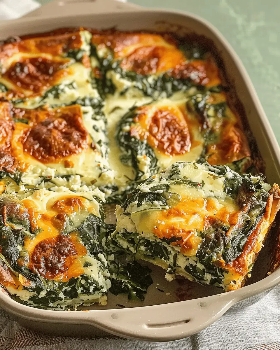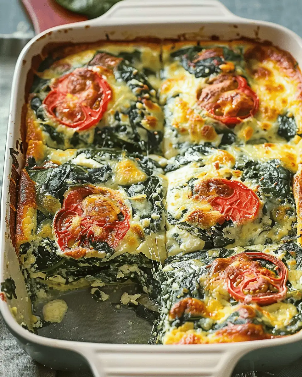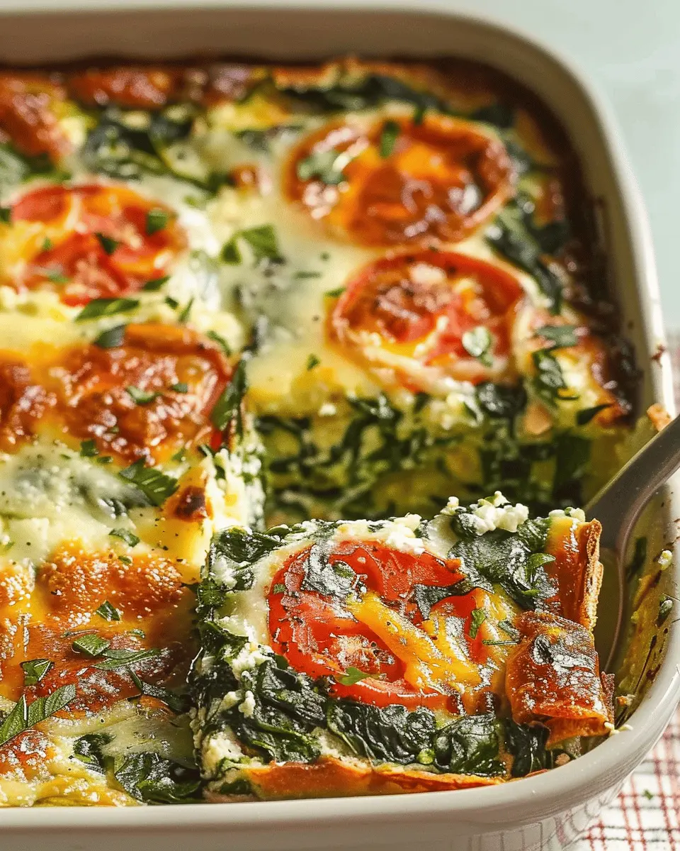A delicious and easy-to-make breakfast casserole featuring spinach and turkey bacon, perfect for a hearty morning meal.