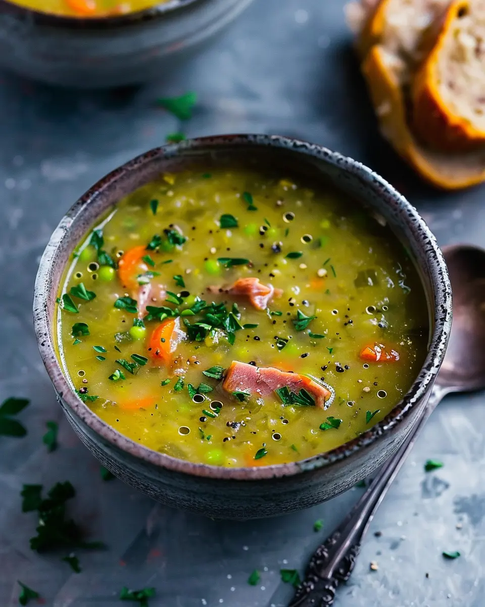 PrintSplit Pea Soup Recipe: Best Comfort Dish with Turkey Bacon & Chicken Ham
