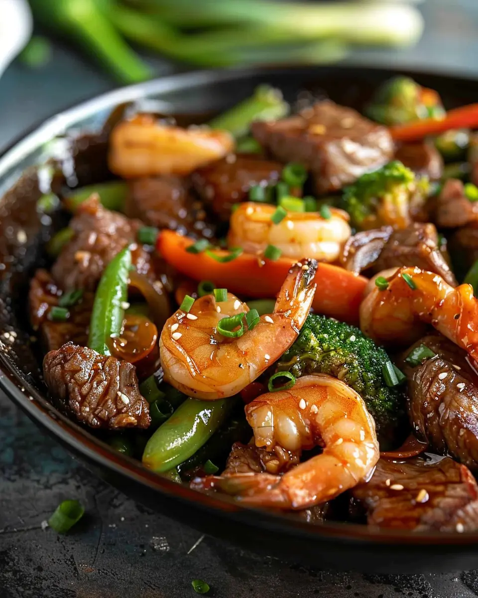 A delicious and easy recipe for steak and shrimp stir fry that is packed with flavor and perfect for a quick weeknight dinner.