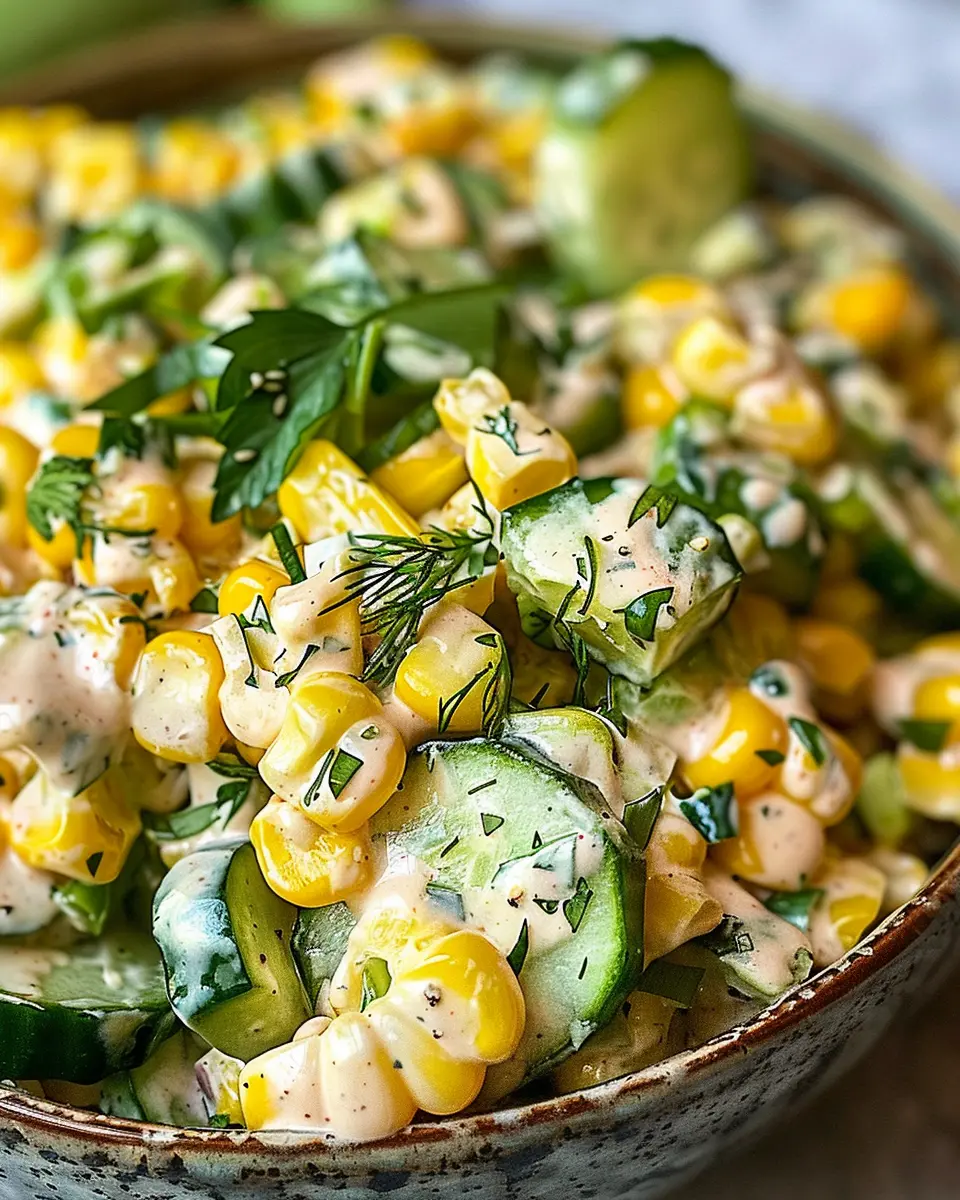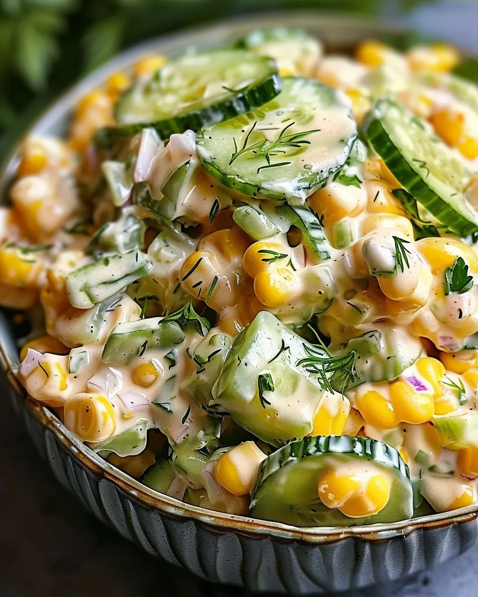 And let’s not forget the health benefits! Corn is packed with essential vitamins and fiber, while cucumbers hydrate and help maintain your skin’s glow. If you’re looking for a way to boost your vegetable intake, this salad can be a fun and delicious solution.
